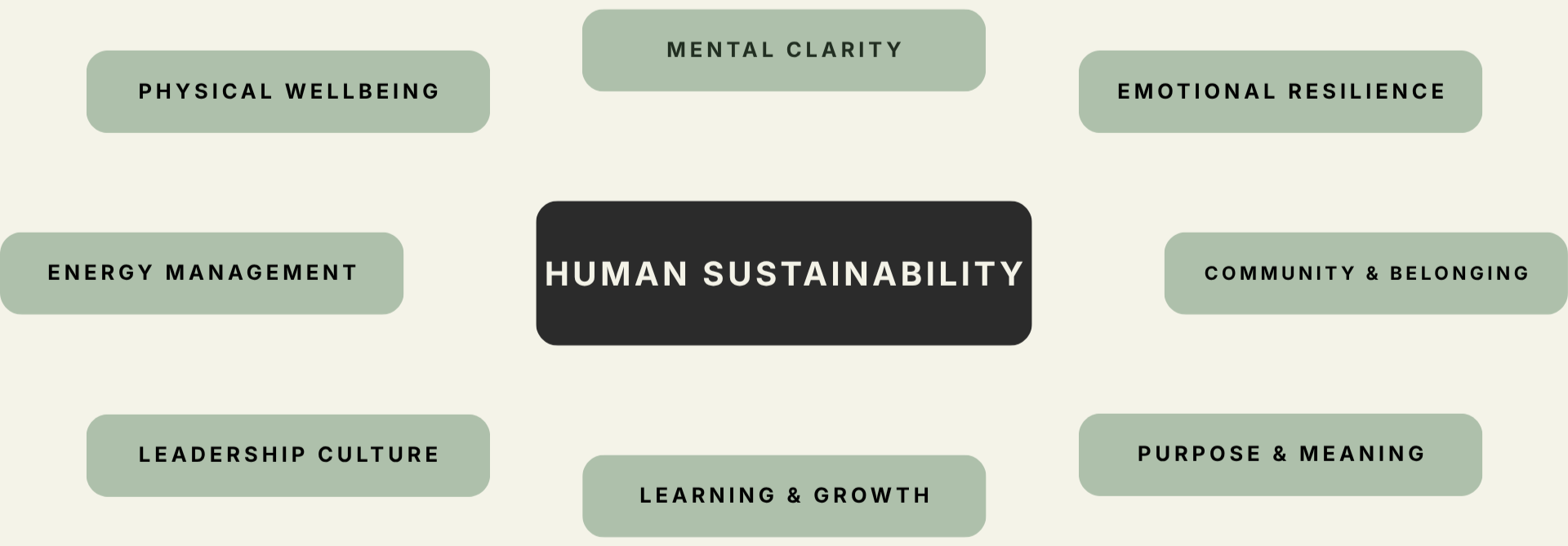 Every engagement begins with a diagnostic phase assessing leadership stress, team dynamics, and organizational culture through the use of our Human Sustainability Model.